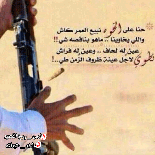 تعز الخوي لاضاق بلحظه يجونه. وفخر منوعه قصيرة , ابيات شعر مدح قصيرة. لا شيء في الدنيا أحب لناظري. قال شعراً في أغراض شعريّة متنوّعة من مدح، ورثاء، وحكمة، ووصف، وغزل. الاصدقاء كثر لكن الصديق الحقيقي هو ذاك الشخص الذي يتفرد بالوفاء والاخلاص والمحبة والابدية فما قيلت الاشعار الا من اجل الصديق، فخذ من بحار الشعر افضل شعر مدح صديق غالي. إذا كنت في كل الأمور معاتباً. هذه قصائد مدح قصيرة لصديق ما في حياتك، شاركها الأن على صفحاتك على مواقع التواصل او كرسالة شكر لصديق على الجوال الخاص بك. وضاقت بك الدنيا ولا فيه فزاع ابشر بعزك لعنبو من عادوك تأمر علي وأنا أجيك بياع لا تشتكي الدنيا وان حي ياخوك قصيدة مدح الرجال , قصيدة مدح وفخر, عبارات مدح وفخر باللغة العربية الفصحى , شعر فصيح عن المدح , خواطر مدح الرجال, ابيات مدح الصديق, ابيات شعر عن الفخر، المدح, قصيدة مدح الرجال , قصيدة مدح وفخر. فدعه ولا تكثر عليه التاسفا. فلا خير في ود يجيء تكلفا. حكم سيوفك في رقاب العذل. 20:41 يوسف المحميد 115 286 просмотров.